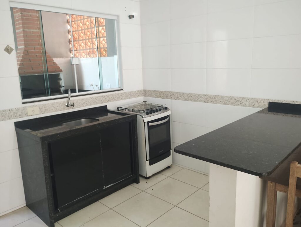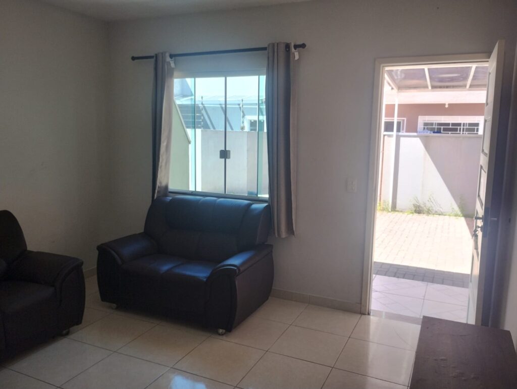 Contendo 2 quartos sendo um banheiro social sala e cozinha combinados lavanderia na área dos fundo e churrasqueira, janelas em esquadria de alumínio com blindex